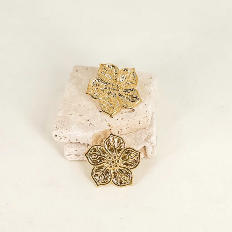 Les boucles d’oreilles Mara apportent immédiatement du caractère à une tenue. Leur forme moderne, sculptée en un motif floral, joue sur les volumes pour encadrer délicatement le visage sans l’alourdir.