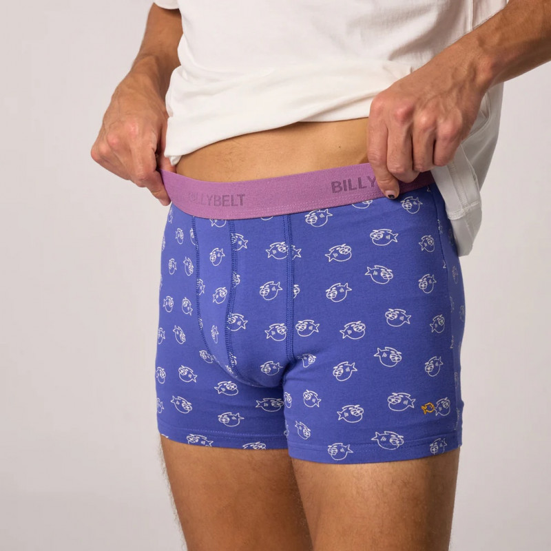 Plongez dans l'originalité avec le boxer billycool de Billybelt en coton bio 100% certifié GOTS décoré de piranhas kawaii. Une création exclusive qui mélange humour aquatique et confort optimal.