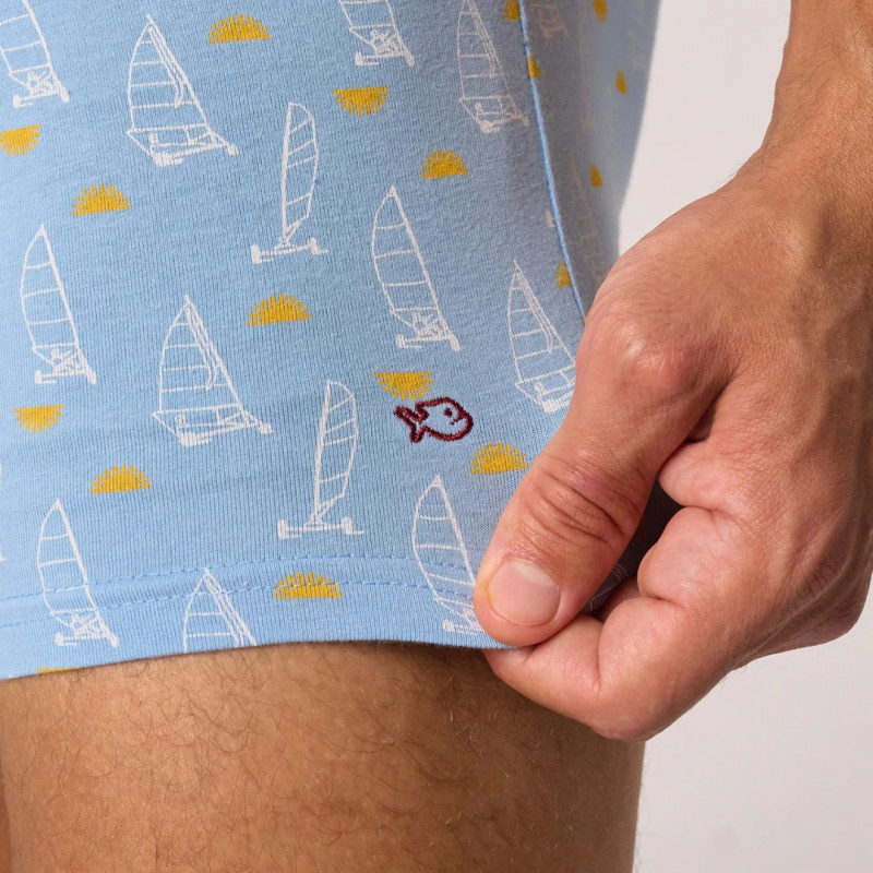 Embarquez pour le style avec ce boxer Land sailer Billybelt en coton bio 100% certifié GOTS orné de motifs voiliers. Les voiliers graphiques apportent une touche nautique rafraîchissante à votre vestiaire. Un imprimé qui évoque la liberté des océans et l'élégance des régates.
