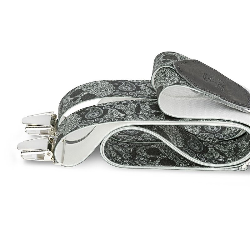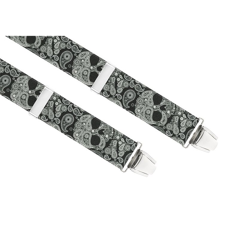 Des bretelles noires à motif tête de mort style cubanisto, fabriquée en France !