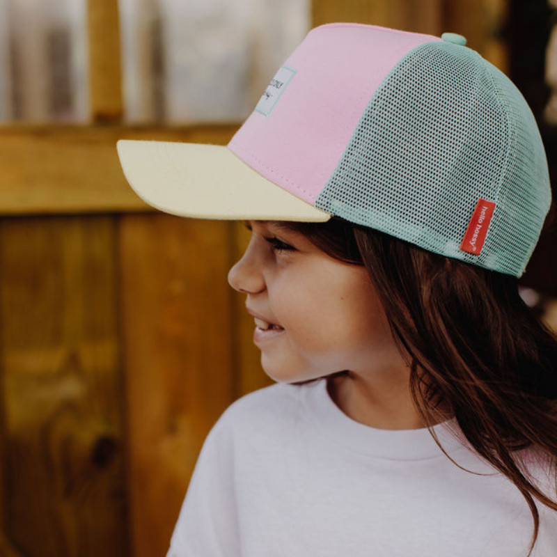 La casquette Mini Poppy de Hello Hossy est LE modèle phare des beaux jours ! Son look funky tricolore mariant rose, vert menthe et jaune fait fondre petits et grands. Cette casquette à filet aéré à l'arrière type trucker est parfaite pour les journées d'été.