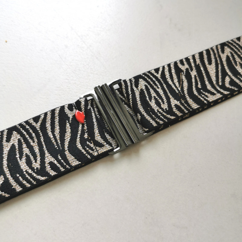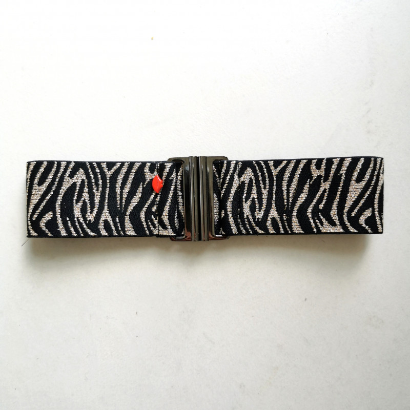 Toujours rêvé d’avoir un look sauvage sans sacrifier le confort ? La ceinture Cha-chas Serafina est là pour ça ! Avec son imprimé zèbre noir et lurex champagne, elle apporte une touche animale et scintillante à toutes tes tenues.