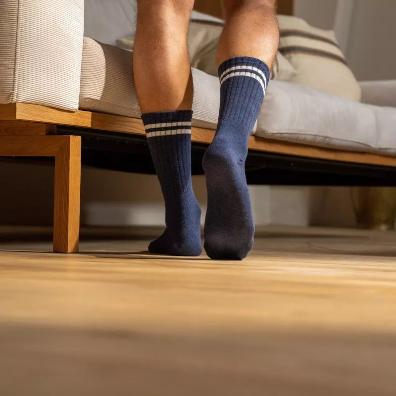 Les chaussettes en coton Rétro bleu de la marque Billybelt sont un modèle à hauteur mi-mollet et à épaisseur intermédiaire.