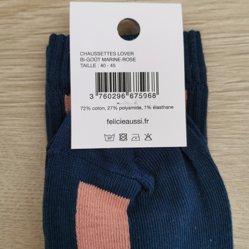 Chaussettes " Lover " bleues marine et roses - Félicie Aussi