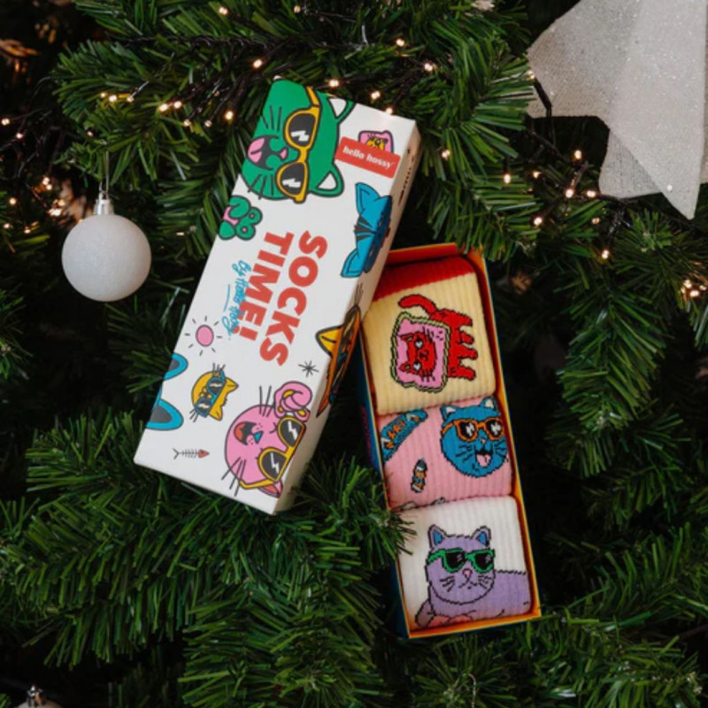 Ce pack de chaussettes enfant Cats by Hello Hossy met à l’honneur les amoureux des chats.