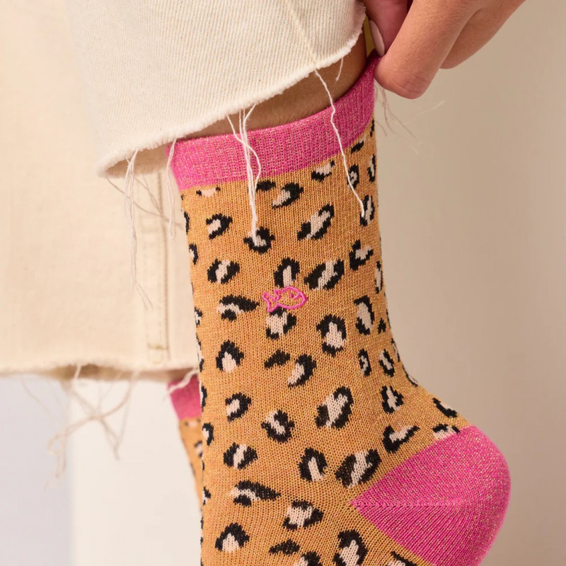 Chaussettes léopard pailletées orange et rose - Billybelt