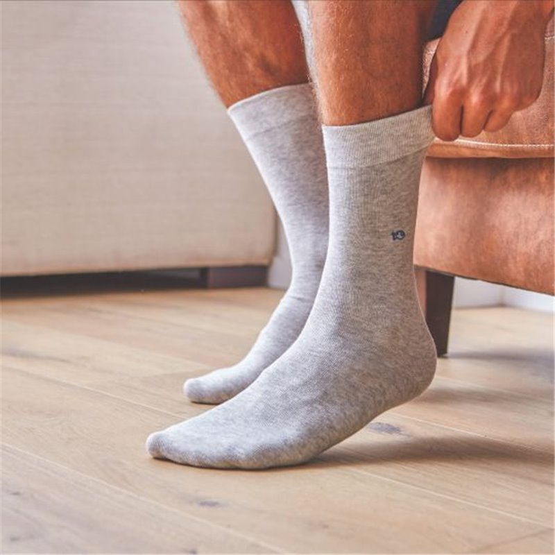 Ces chaussettes gris chiné de la marque BILLYBELT sont tricotées en coton peigné OEKO-TEX, certifié sans substances nocives. Les chaussettes sont remaillées à la main pour des coutures très fines et plus confortables. Elles tiendront chaud à vos pieds en toutes saisons avec leurs épaisseur intermédiaire.