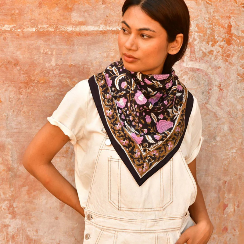 Confectionné en 100 % twill de coton indien et imprimé artisanalement au block-print. Le tissu est doux et réchauffe n'importe quel look !