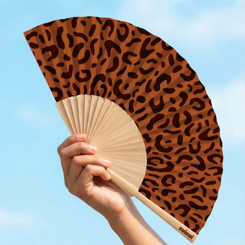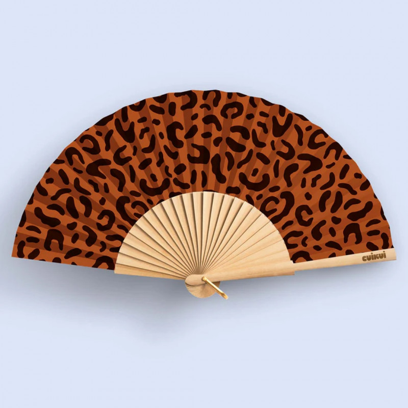 Cet éventail va droit au but : il fait son effet, il se remarque, il lance des conversations. La structure bois et polyester-coton 23 x 42 cm tient bien en main et s'agite avec efficacité quand la chaleur monte vraiment.