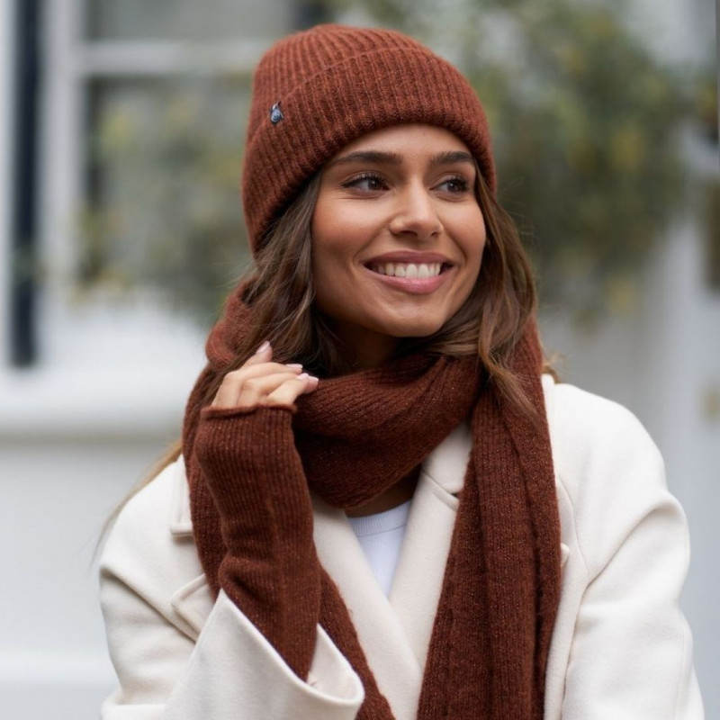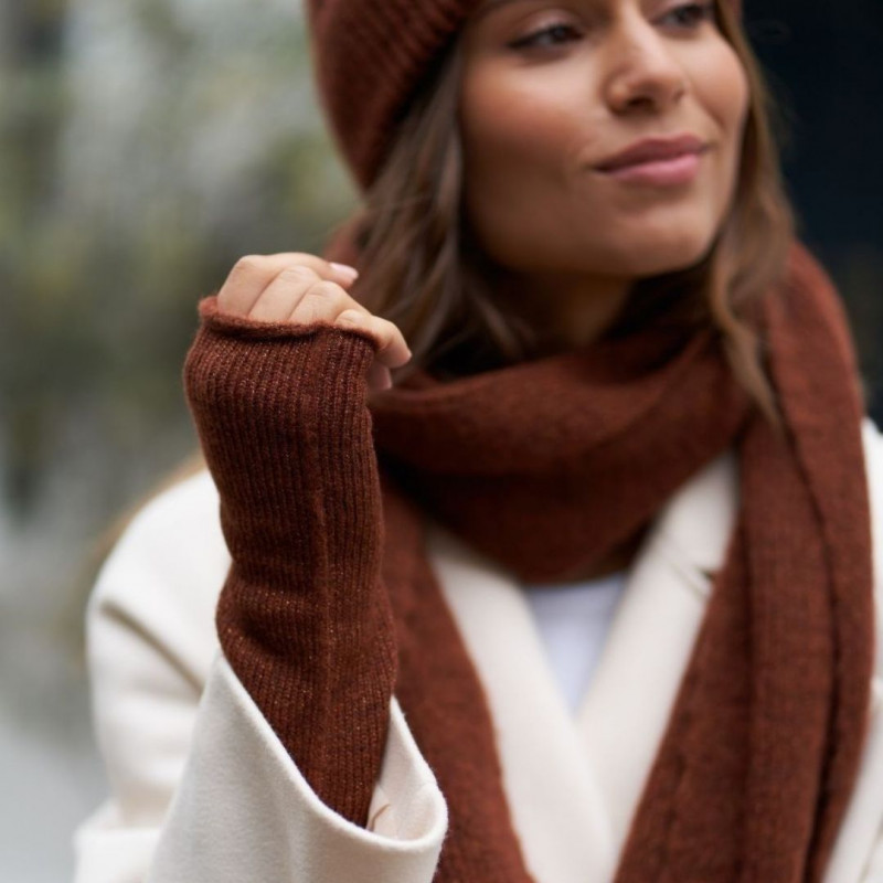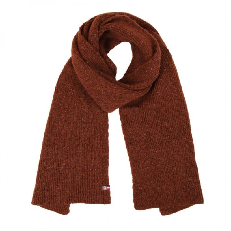 Élégante écharpe femme en laine marron subtilement pailletée de la marque française Maison Bonnefoy.