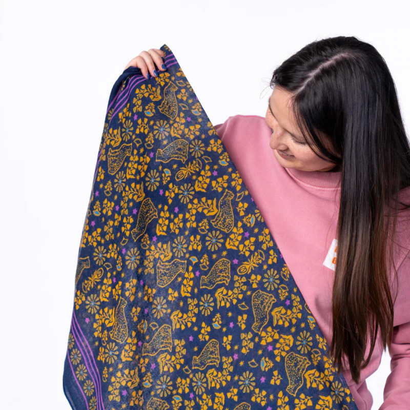 Le motif du foulard Constance réveille le fond marine ; les touches jaunes éclairent le visage. Le Foulard constance made by Billybelt s’accorde à une tenue simple et fait tout de suite la différence.