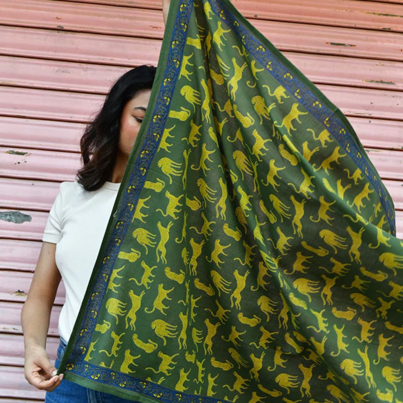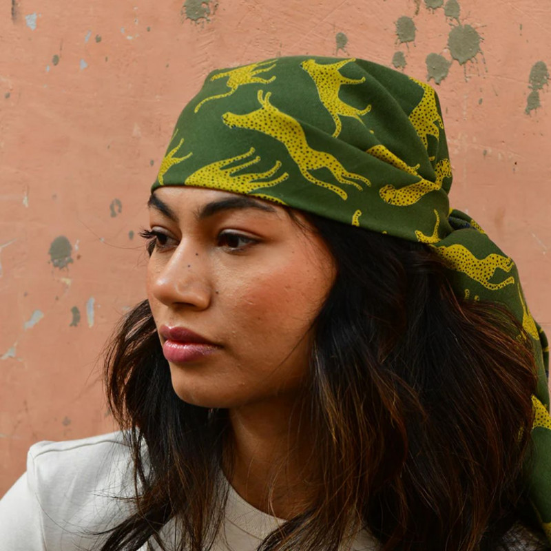 Le grand foulard Fauve Vert apporte une atmosphère sauvage à vos tenues. Avec son imprimé animalier kaki et son motif fauve, il se porte aussi bien autour du cou que sur les épaules.