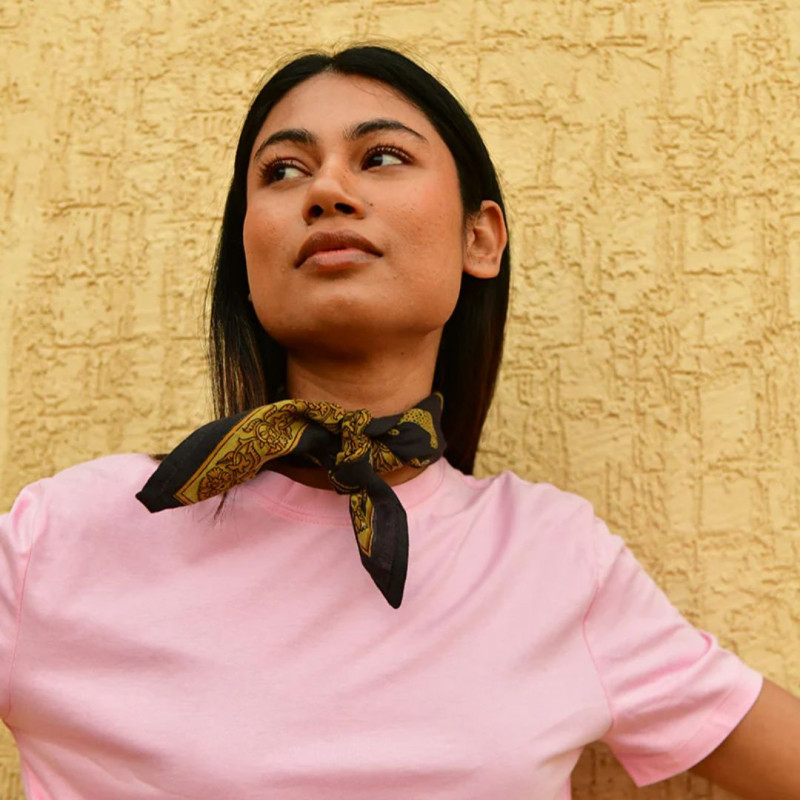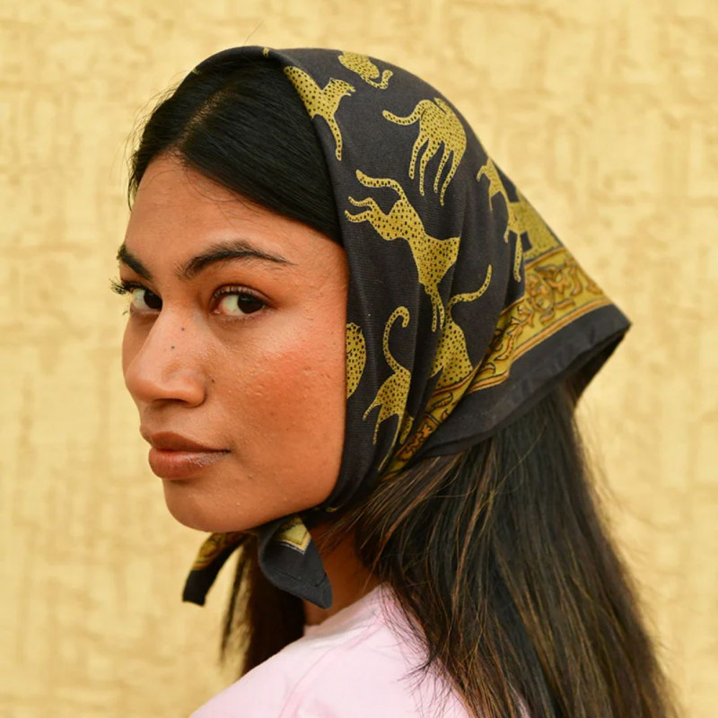 Imprimé à la main via la technique du blockprint, ce foulard révèle des légères variations de motif — chaque pièce est unique. Sa matière en coton doux assure un tombé fluide et agréable au contact de la peau.