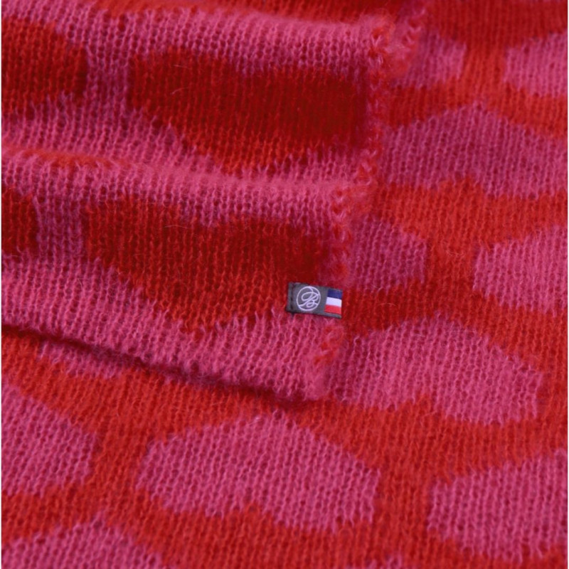 Les teintes rose-rouge lui donnent de l'éclat : ni trop flashy, ni trop timide. Avec ses motifs de cœurs, elle ajoute une note romantique à n’importe quel look, que ce soit un manteau neutre ou une tenue aux tons doux.