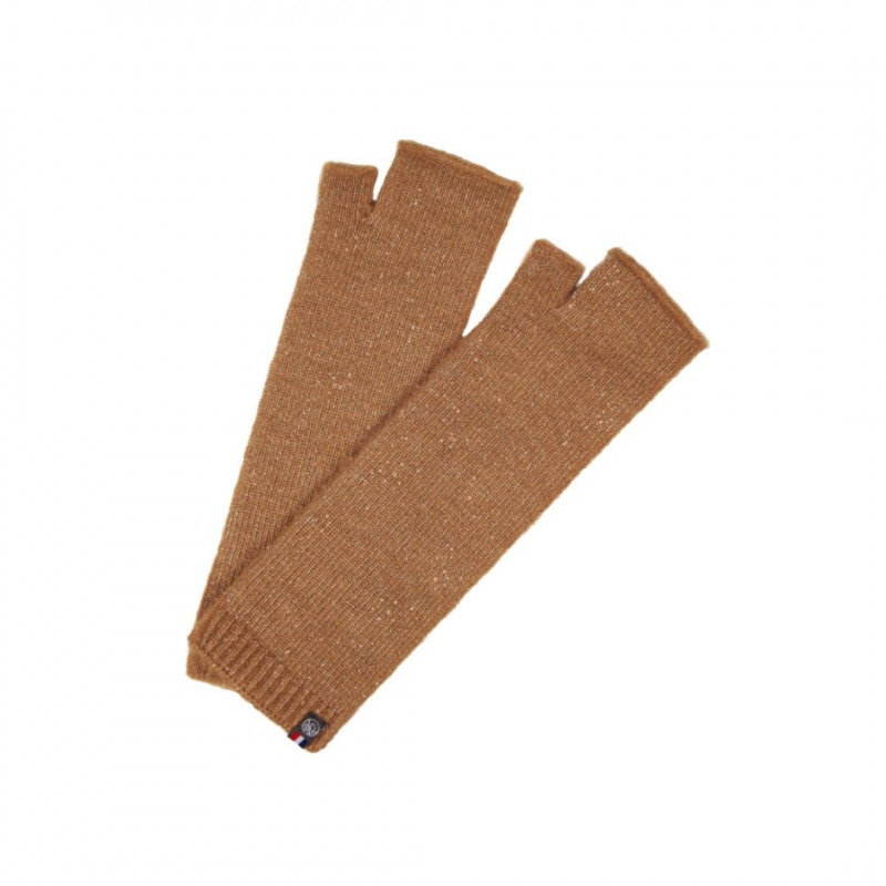 Craquez pour ces mitaines femme en laine camel, légèrement pailletées, signées Maison Bonnefoy.