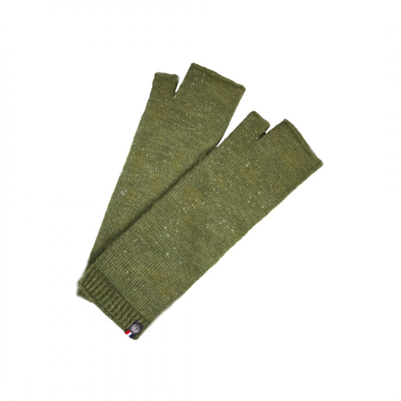 Craquez pour ces jolies mitaines en laine kaki, légèrement pailletées, signées Maison Bonnefoy.