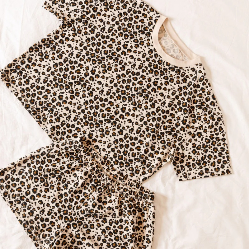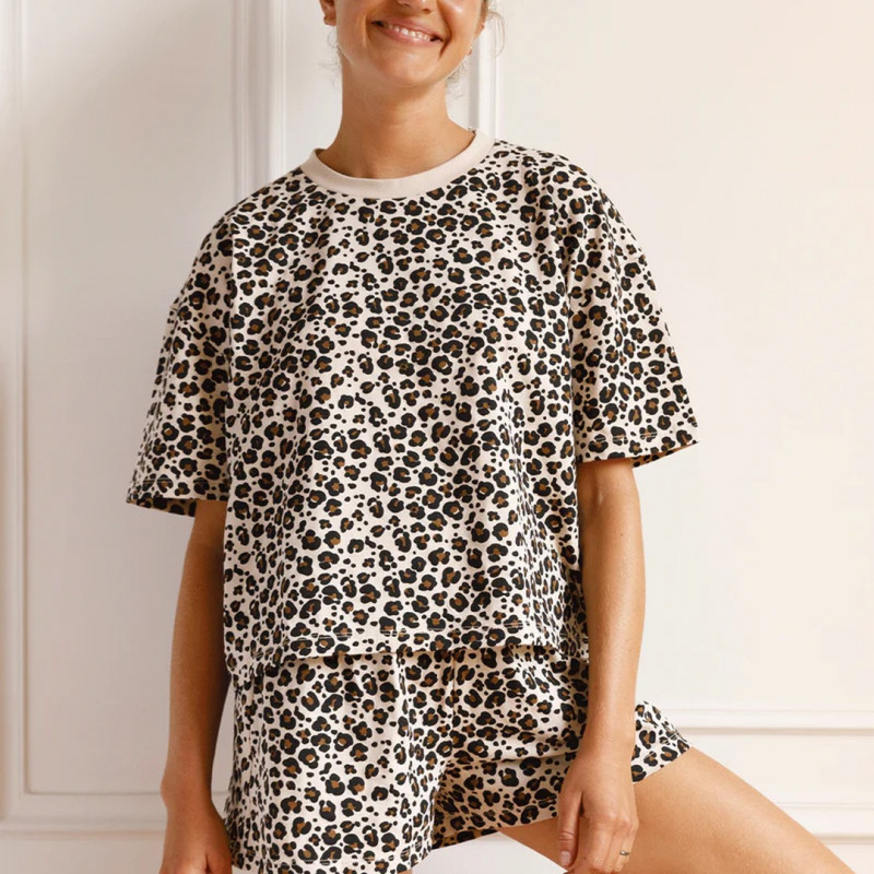L'un des grands favoris de We Are Jolies : le pyjama Léopard Beige réunit l'imprimé animal dans ses tons naturels et la douceur irréprochable du coton biologique. T-shirt et short à taille élastiquée pour un confort total nuit et matin.