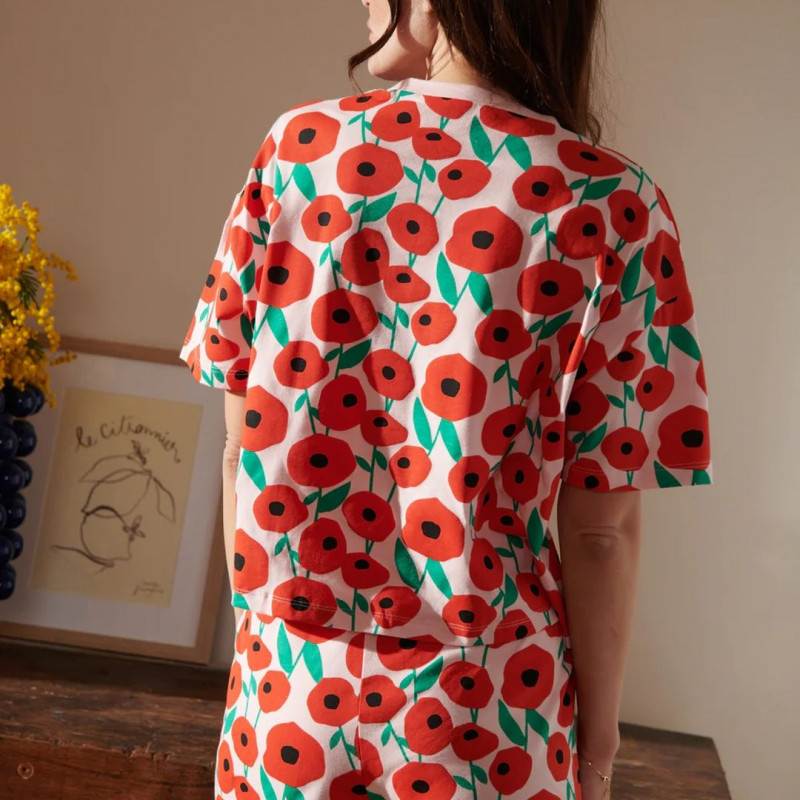 Le coquelicot a toujours ce petit quelque chose d'irrésistible. Cet ensemble pyjama court de We Are Jolies s'en est emparé pour créer un imprimé qui donne envie de se glisser sous la couette dès 20h.