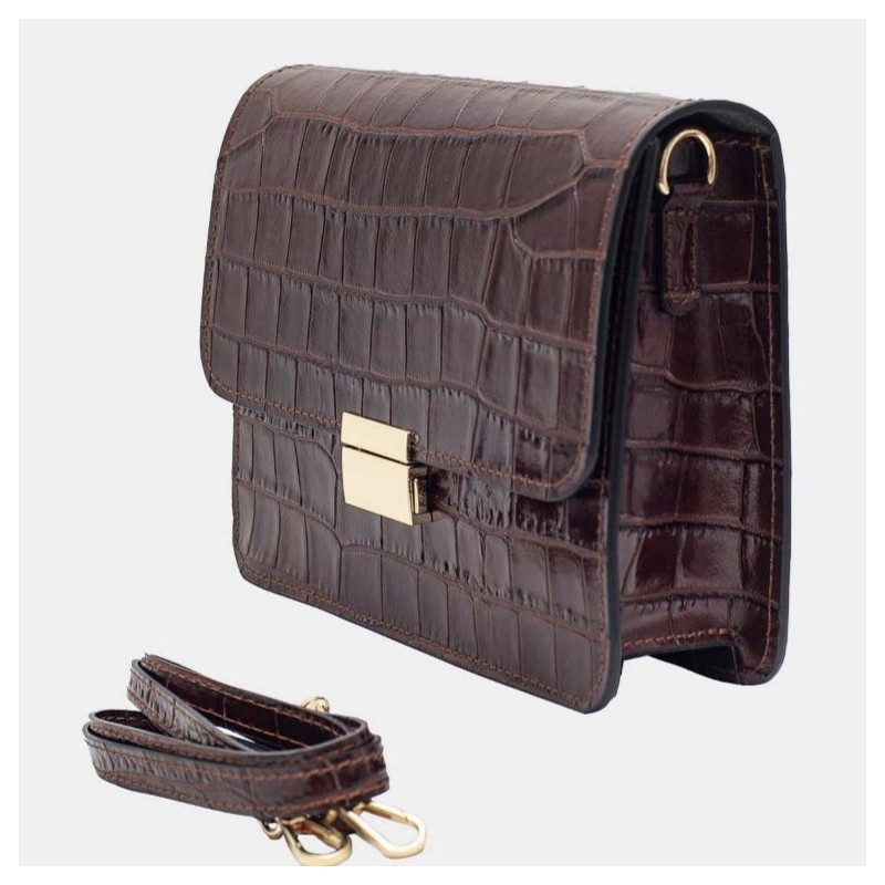Le sac Milena croco marron conjugue élégance classique et modernité assumée. Réalisé en cuir de vachette embossé effet croco, il attise le désir. Son coloris marron intemporel est parfait pour rehausser aussi bien une tenue citadine qu’un look plus habillé.